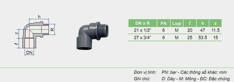 NỐI GÓC 90 ĐỘ REN NGOÀI