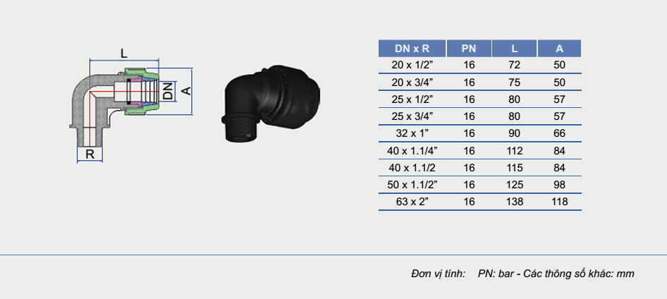 NỐI GÓC 90 ĐỘ REN NGOÀI
