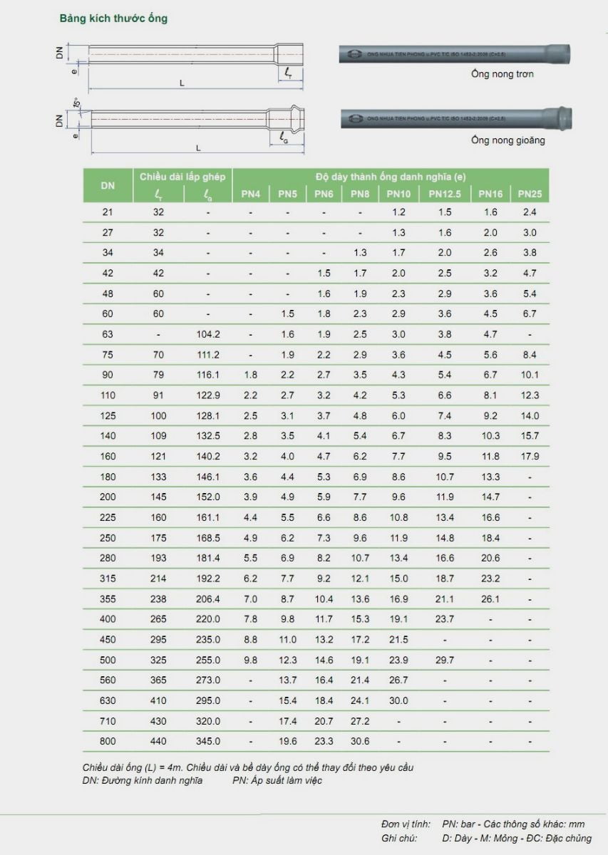 ỐNG & PHỤ KIỆN UPVC TIÊU CHUẨN ISO 1452-2( HỆ MÉT)